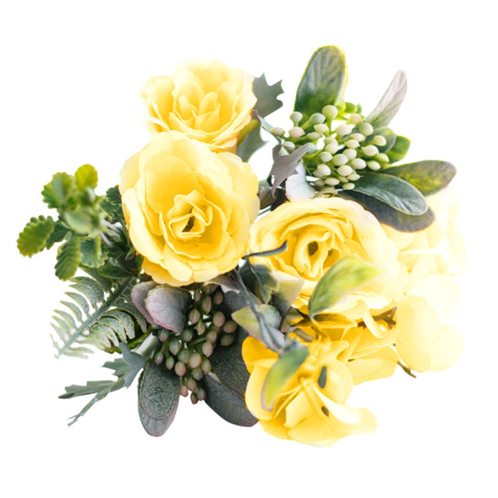 1 Bouquet Artificial Lifelike Rose Flowers Silk Flores Yellow Walmart Com